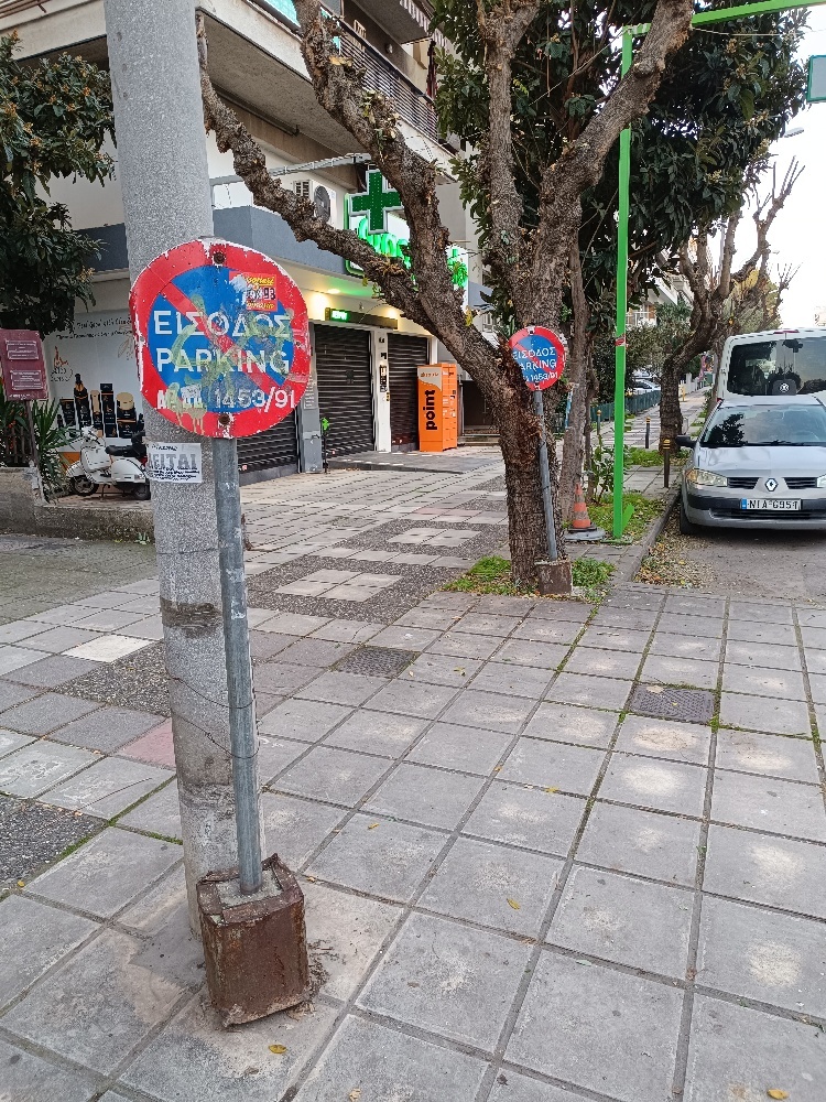 | Περιγραφή | Επί της οδού Αιγαίου 47, με κατεύθυνση προς την Εθν. Αντιστάσεως, υπάρχουν δύο πινακίδες απαγόρευσης στάθμευσης,που δεν είναι πακτομενες στο πεζοδρόμιο και δεν φαινονται στο " γεωευρετήριο για τις άδειες χρήσης κοινόχρηστου χώρου. Παρακαλώ να ελέγξετε την νομιμότητα τοποθέτησης των εν λόγω πινακίδων. Ευχαριστώ |