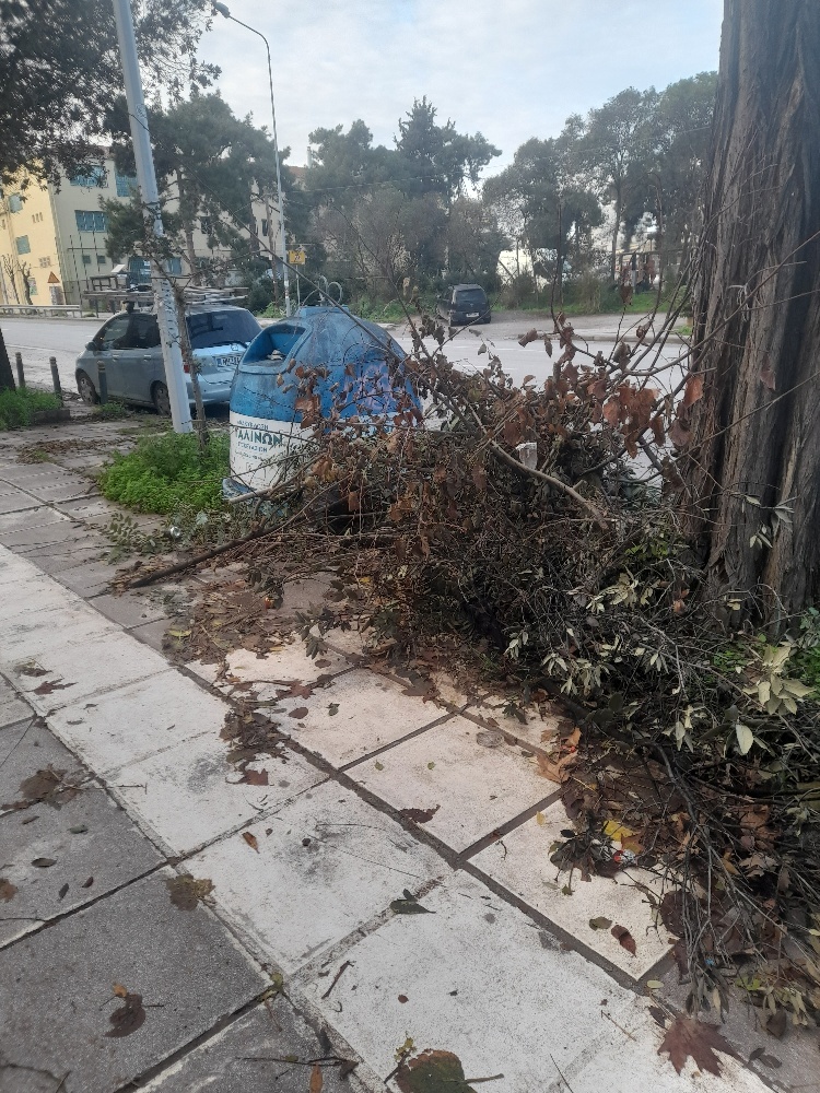 Κλαδια ξεχασμενα και μετα σκουπισμα αρχη μεχρι τα φαναρια .....