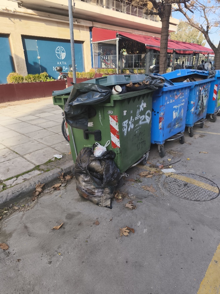 | Περιγραφή | Να επαναδρομολογηθει η αποκομιδή την Παρασκευή το πρωί. Από το απόγευμα της Παρασκευής έχει γεμίσει και μετά όλο το Σαββατοκύριακο τα μαγαζιά αφήνουν τις σακούλες από έξω |