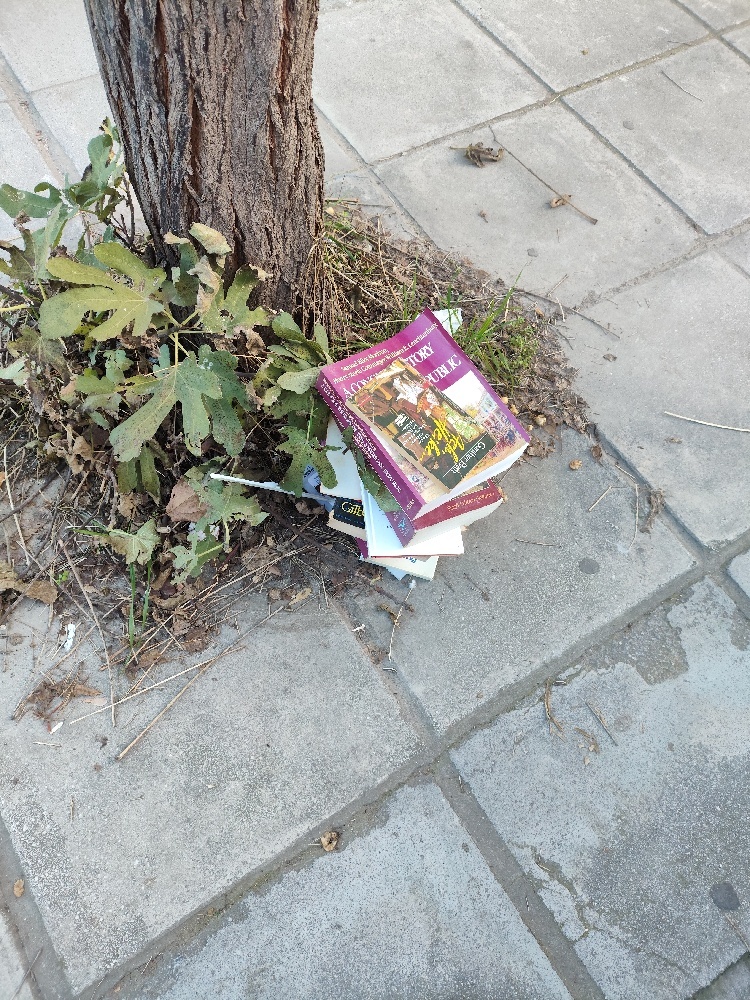 | Περιγραφή | Αυτά τα βιβλία είναι παρατημένα στην οδό πόντου 1,και θα παρακαλέσω αν γίνεται να μεταφερθούν και να αξιοποιηθούν όπως τους αρμόζει. |
