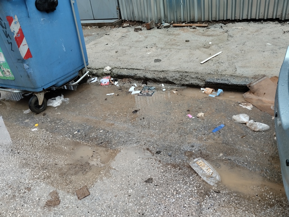 Σκούπισμα στους κάδους στην οδό Σίμου Λιανιδη 8