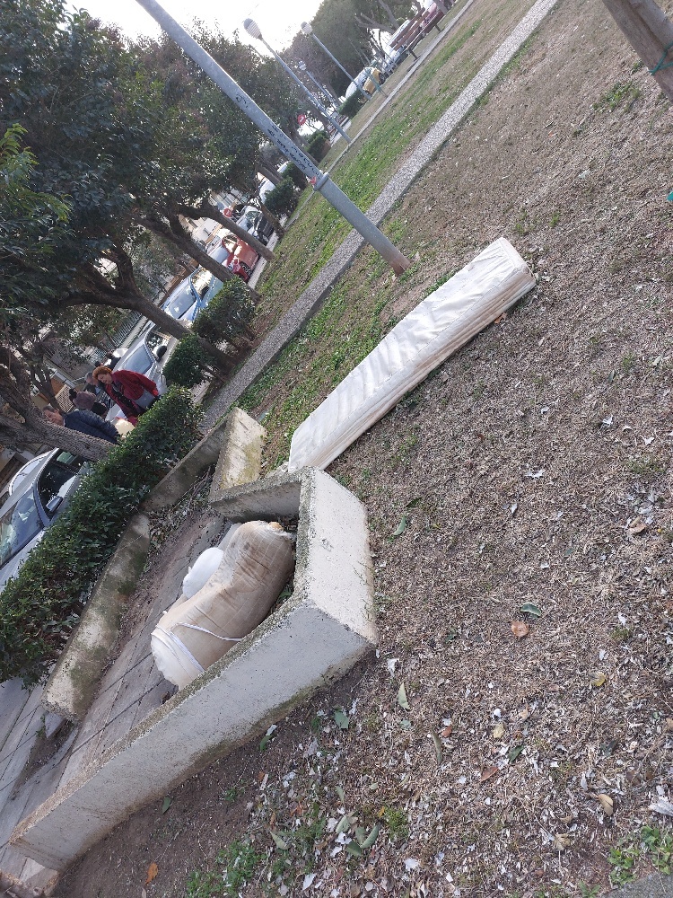 Παρακαλώ να μεταφερθεί ένα βρώμικο στρώμα το οποίο βρίσκεται έξω από κάδο δίπλα στην παιδική χαρά της Πλατείας Σκρα.