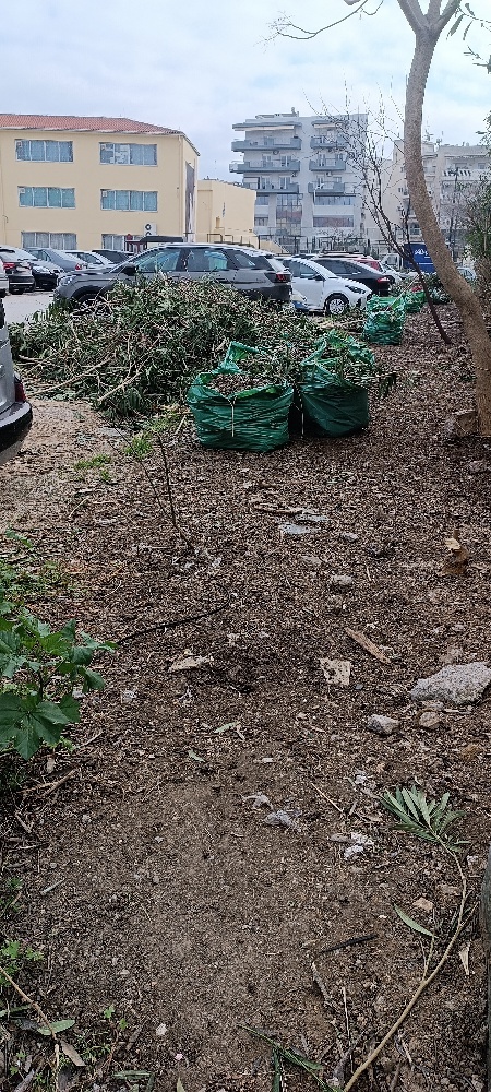 Kλαδια και σακούλες του δήμου παρατημένα 7ο Γυμνάσιο Καλαμαριάς(στην αλάνα -parking) ΠΑΤΜΟΥ