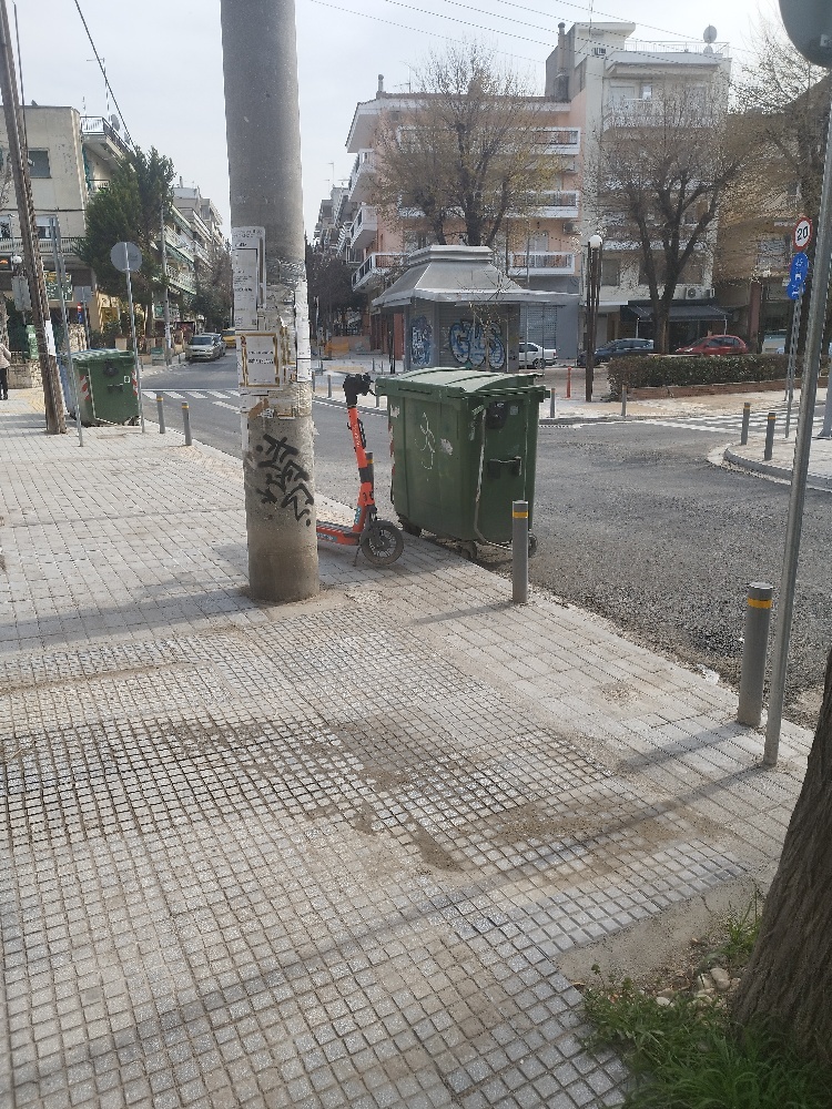| Περιγραφή | Ο κάδος απορριμμάτων βρίσκεται ή επάνω στον καινούργιο πεζόδρομο ή στον δρόμο ενώ υπάρχει κατασκευασμένη θέση για αυτόν τον λόγο. Παρακαλώ να μεριμνήσετε ώστε να τοποθετηθεί σωστά διότι εάν φυσήξει δυνατά ή βρέξει δυνατά θα βρεθεί σε σημεία που μπορεί να προκληθεί ατύχημα. |