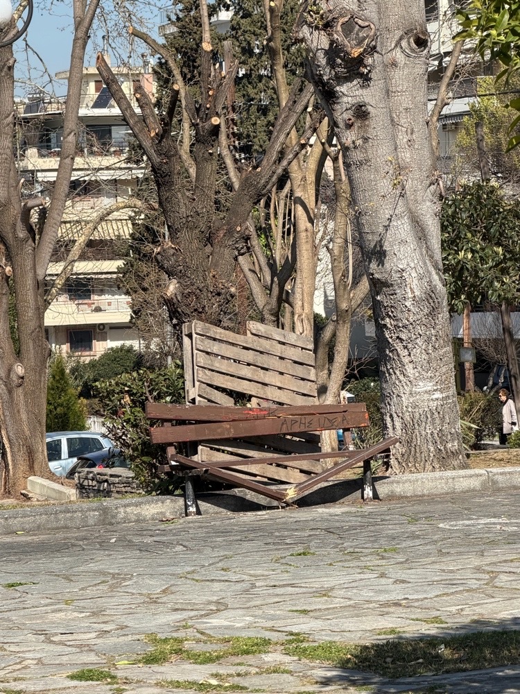 | Περιγραφή | Σπασμένο παγκάκι στο πάρκο Κερασούντος εδώ και καιρό |