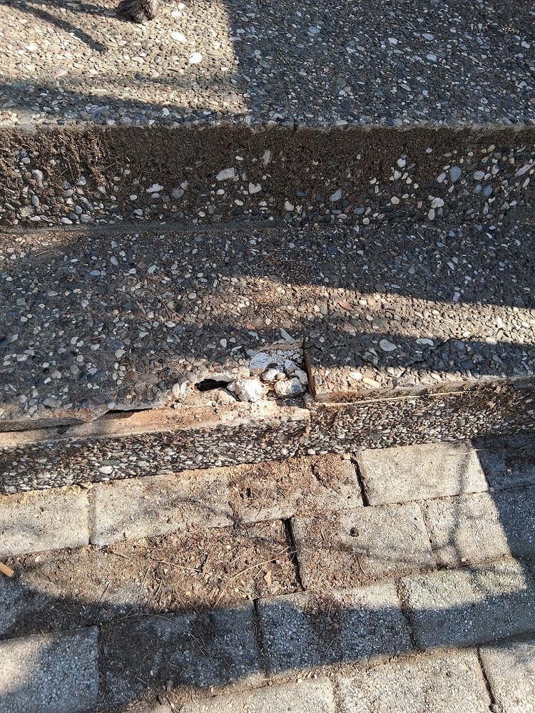 | Περιγραφή | Σπασμένη πλάκα πεζοδρομίου, δίπλα στο εκκλησάκι των Ταξιαρχών στο Remezzo, ανεβαίνοντας από την μαρίνα στην Ν. Πλαστήρα |