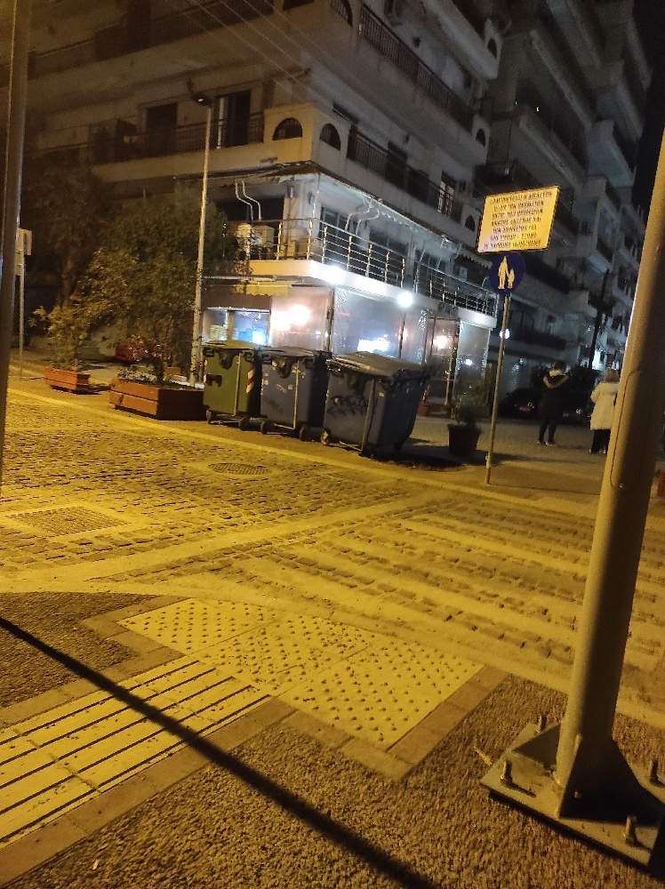 | Περιγραφή | είναι οι κάδοι που θα έπρεπε να βρίσκονται επί της οδού Παπαντωνίου που υπάρχει και η κατάλληλη θέση. αντιθέτως διακοσμούν τον πεζόδρομο. φιαχτικε ο δρόμος στην οδό Παπαντωνίου. γιατί δεν τους βάζουν οι άνθρωποι της καθαριότητας στην θέση τους; |