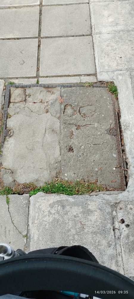 Υπάρχει φρεάτιο που έχει χαλάσει και δημιουργεί πρόβλημα πρόσβασης. Είμαι ΑΜΕΑ περνάω από εκεί με αμαξίδιο και πολλές φορές δυσκολεύομαι να περάσω. Ειδικά αν κάποιο αυτοκίνητο "ανέβει" στο πεζοδρόμιο είναι εξαιρετικά δύσκολο και αναγκάζομαι να πάω από τον δρόμο. Επίσης έχω δει μητέρες με καροτσάκι να προσπαθούν να περάσουν και σκαλώνουν. Υπάρχει κίνδυνος ατυχήματος