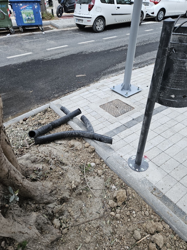 | Περιγραφή | το συνεργειο που εκανε την συνδεση των νεων στηλων φωτισμου παρατησε τα σκουπιδια σε ολο το μηκος του δρομου |