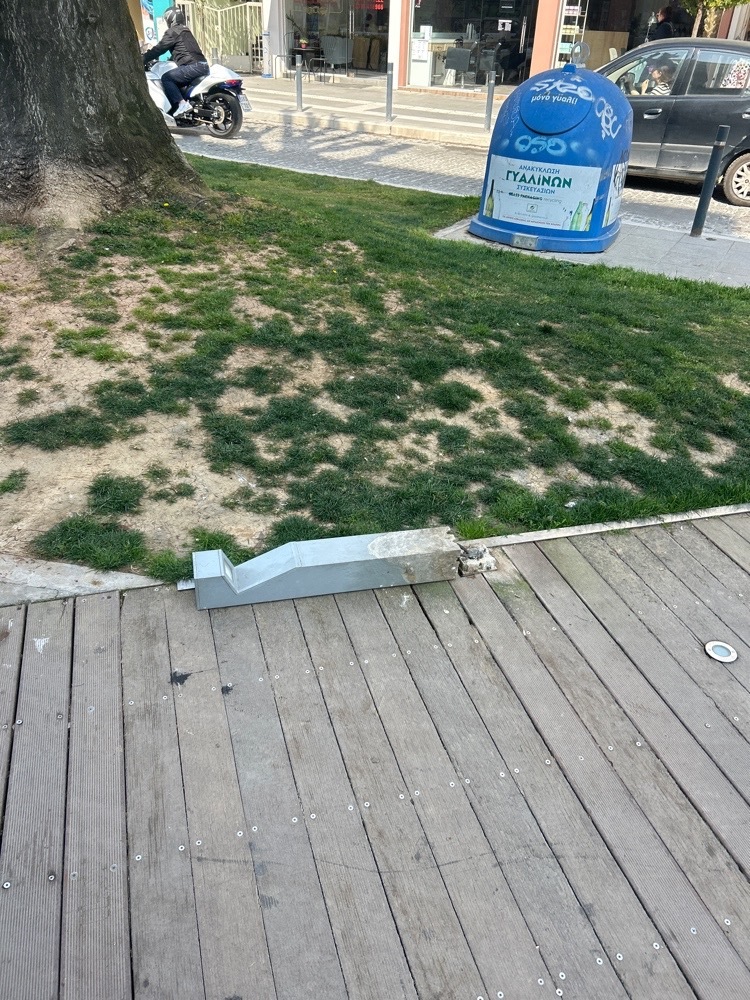 | Περιγραφή | εχει παρατηρηθεί ότι έχει σπάσει ένα σποτ ποδηλατόδρομου και δεν ανάβουν καθόλου τα φώτα του ποδηλατοδρόμου και των τραπεζοκαθισματων που έχουμε νοικιάσει . Επίσης όταν δούλευαν όλα είχε παρατηρηθεί ότι έχουμε δύο καμένες λάμπες από τις 4 που υπάρχουν στα ενοικιαζόμενα ντεκ τραπεζοκαθισματων |