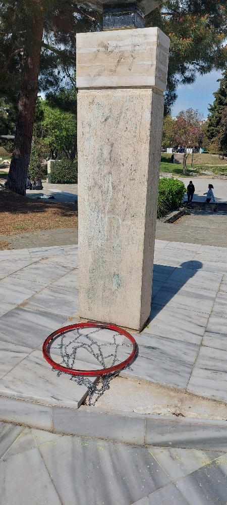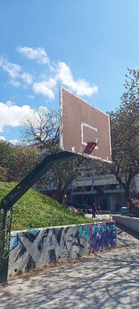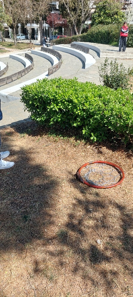 | Περιγραφή | Το στεφάνι της μιας μπασκετας στο Ούλοφ Πάλμε τελικά ξηλώθηκε ολοσχερώς. Χρειάζεται να τοποθετηθεί νέο, καθώς τώρα έχει αχρηστευθεί το μισό γήπεδο. Το κομμένο στεφάνι κυκλοφορεί στο πάρκο, πέριξ της προτομής του Ούλοφ Πάλμε. |