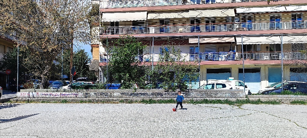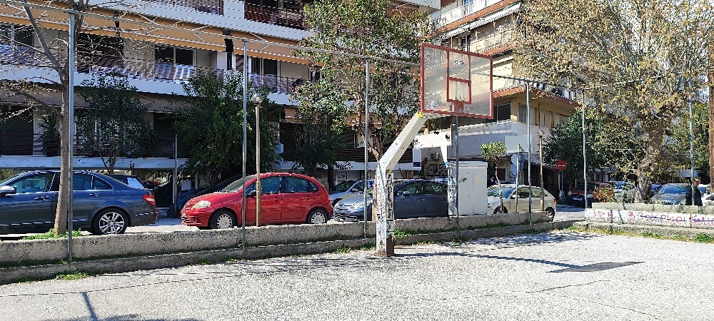 Αδύνατη χρήση του χώρου για αθλητισμό — μπάλες βγαίνουν εκτός και κινδυνεύουν να χτυπήσουν σταθμευμένα οχήματα ή διερχόμενους