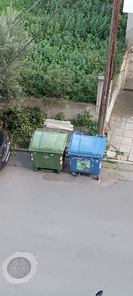 κομμενα κλαδιά πισω απο τους κάδους Ήρας