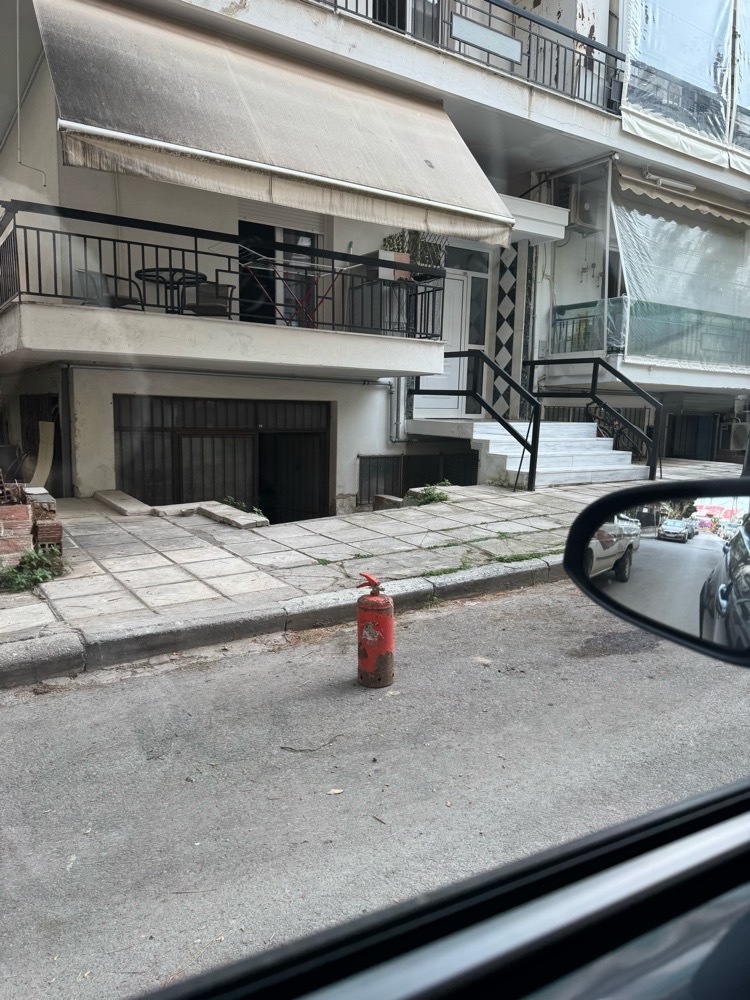 εμποδια στο δρομο Χάλκης (3 πυροσβεστήρες στην άκρη του δρόμου για κράτηση θέσης στάθμευσης )