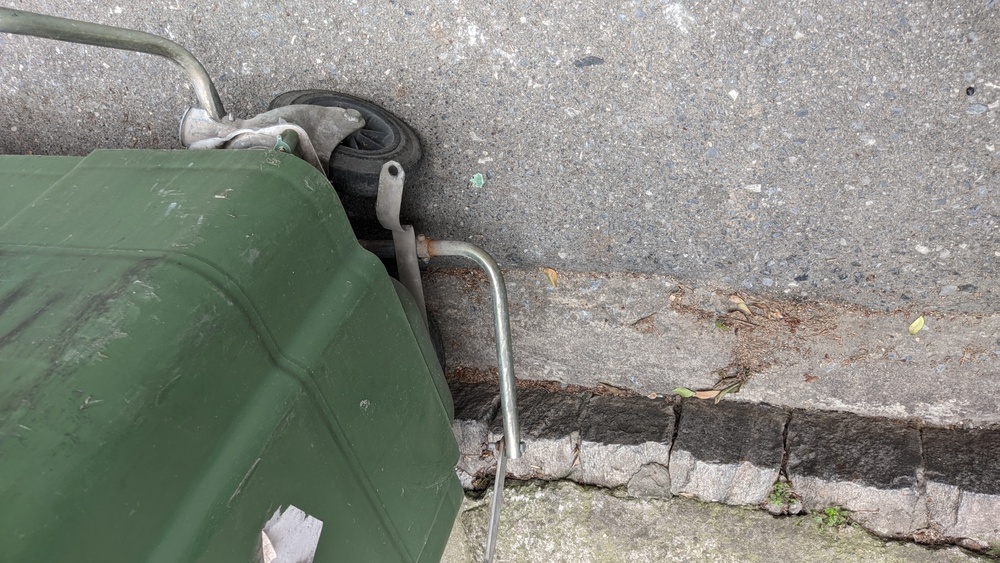 Σπασμένα πόδια κάδου, με αποτέλεσμα να μην λειτουργεί το ποδοάνοιγμα. Επίσης έχει ραγισμένο καπάκι και σπασμένα χερούλια!