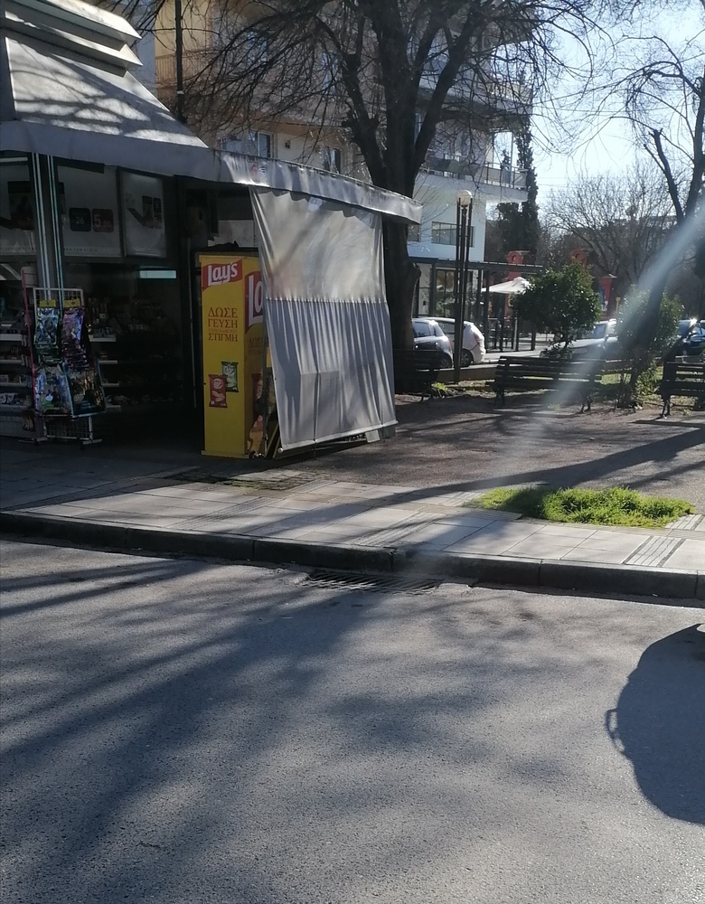 Έμπροσθεν του περιπτέρου υπάρχουν δύο κενές δενδροδόχοι, οι οποίοι παραμένουν κενές και ανοιχτές, γεγονός επικίνδυνο για την διέλευση πεζών. Απαιτείται η αποκατάσταση του πεζοδρομίου