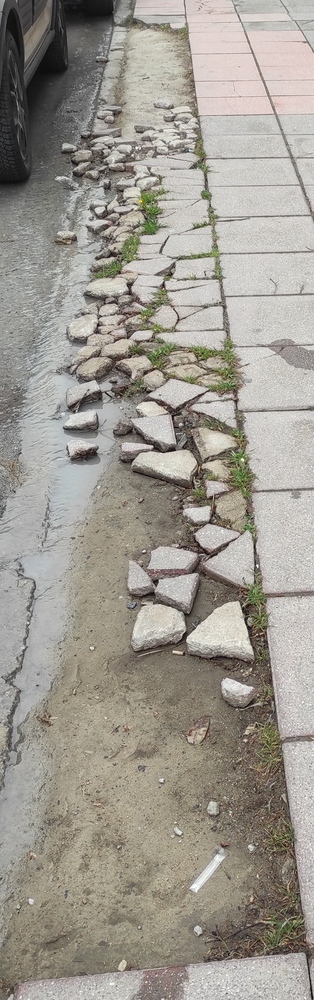 | Περιγραφή | Σπασμένα πλακάκια στο πεζοδρόμιο |