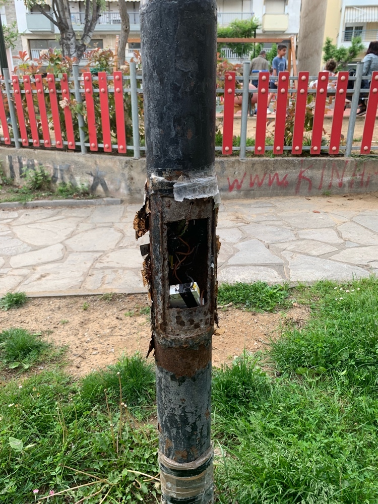 Επικινδυνες κολωνες φωτισμου στο Παρκο Κατρακη!