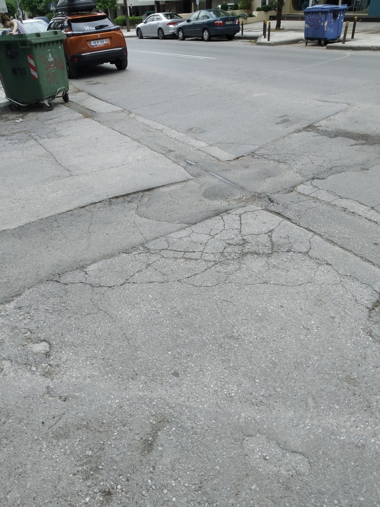 Στην οδο Αιγαίου 35 ο Δρόμος εχει λακουβα και φαίνεται μέσα ο σωλήνας.Επισης απο την απέναντι μεριά του πεζοδρομίου δεν υπάρχει ράμπα αναπήρων και αντι αυτού έχει κάδους σκουπιδιών